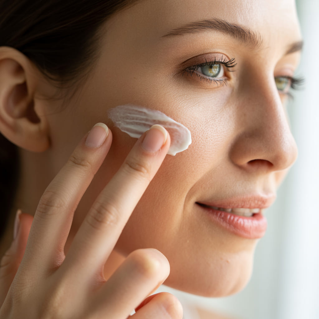 By pressing a tiny amount of moisturizer into the area, you rehydrate both the makeup and the skin underneath just enough to rebalance the surface. It smooths flakes. It softens edges. It blends out weird buildup. It makes the whole area more flexible again.